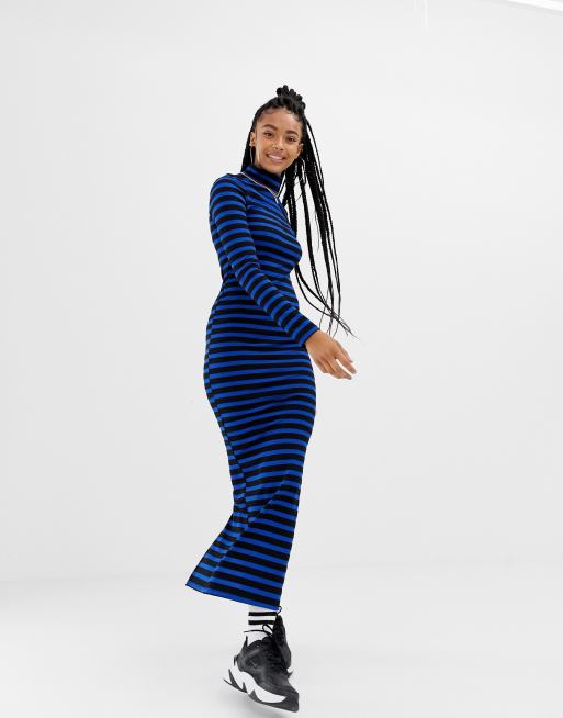 Nautical Blue Dress Women White Stripes Print Aesthetic Bodycon Dress Spring Long Sleeve Retro Dresses Graphic Oversized Vestido Very well made.