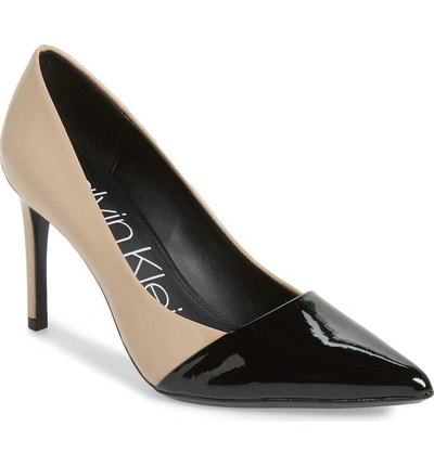 Calvin Klein Roslyn Pointed Toe Pump In Sand Black Patent Leather Very well made.