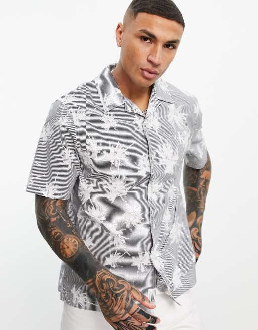 Calvin Klein Jeans all over palm print short sleeve shirt in black Very well made.