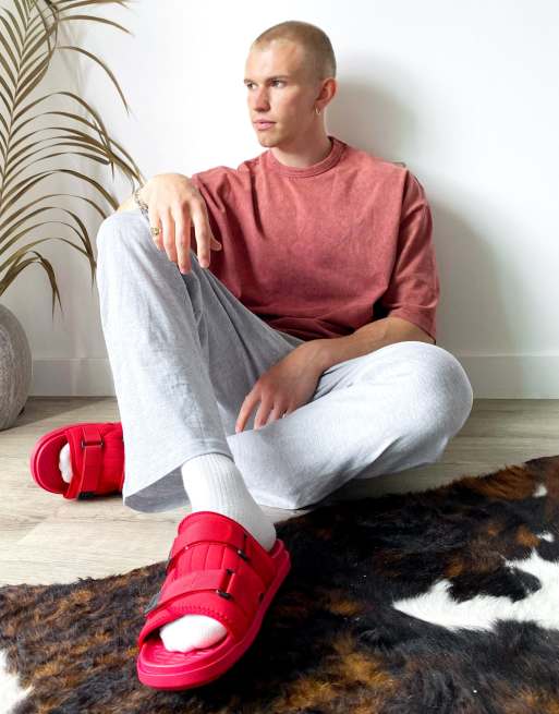 ASOS DESIGN Claquettes techniques de confort doubl es de fausse fourrure noire Rouge Very well made.