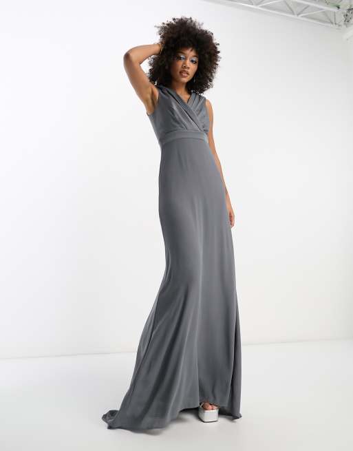 TFNC Bridesmaids bardot fitted maxi dress in dark grey Very well made.