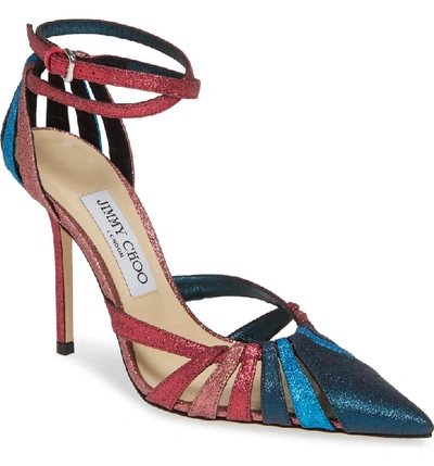 Jimmy Choo Travis 100 Raspberry Mix Glitter Fabric Strappy Pump Very well made.