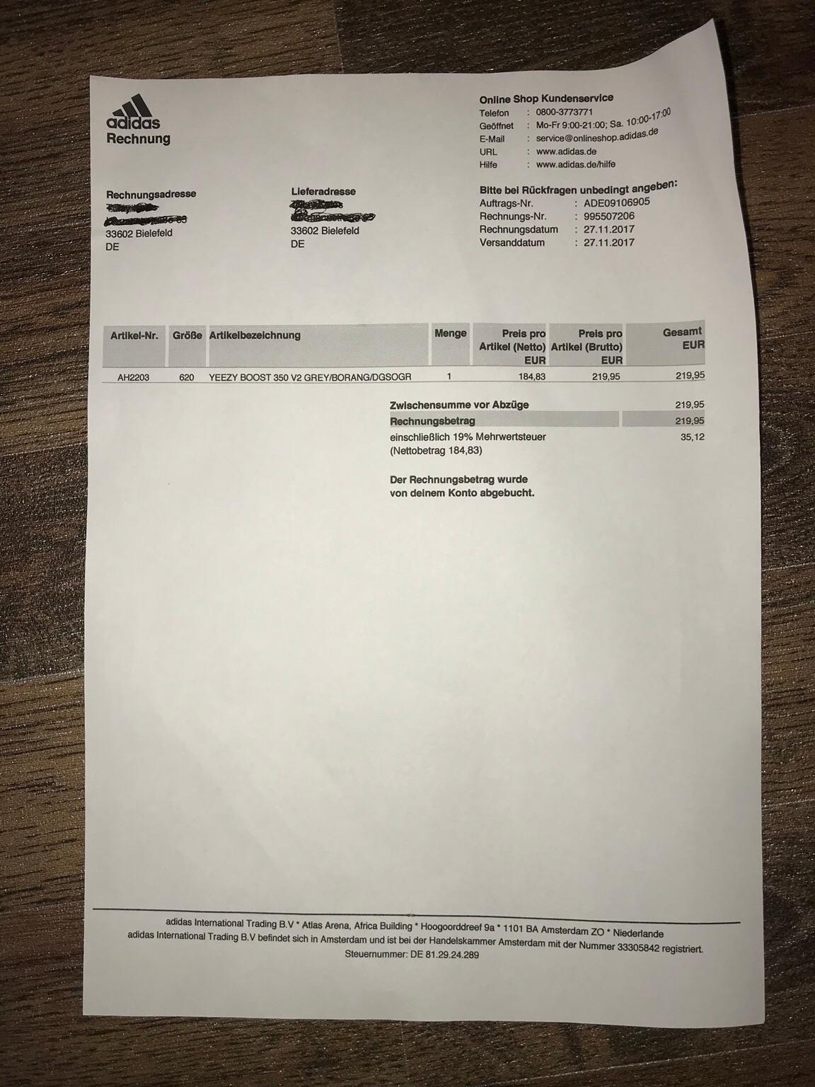 adidas Bestellschein Very well made.
