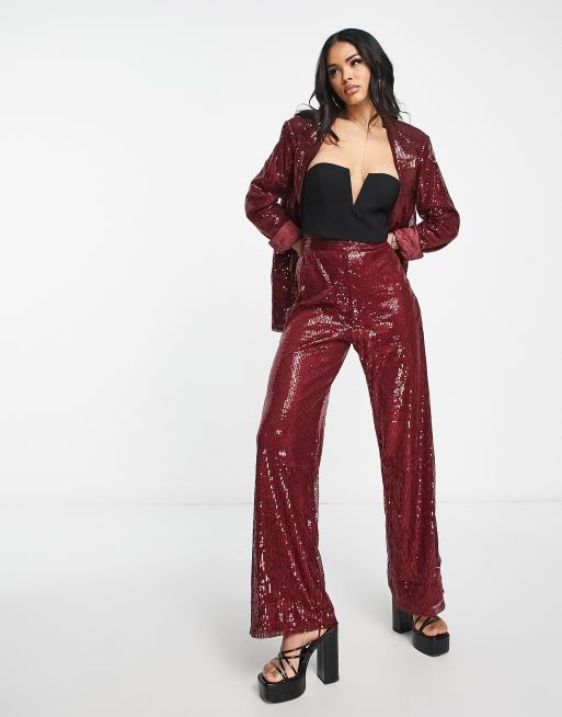 NaaNaa Pantaloni a vita alta con paillettes bordeaux in coordinato Very well made.
