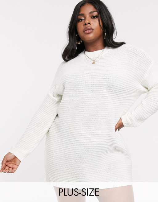 Missguided Plus ribbed sweater dress with high neck in white Very well made.