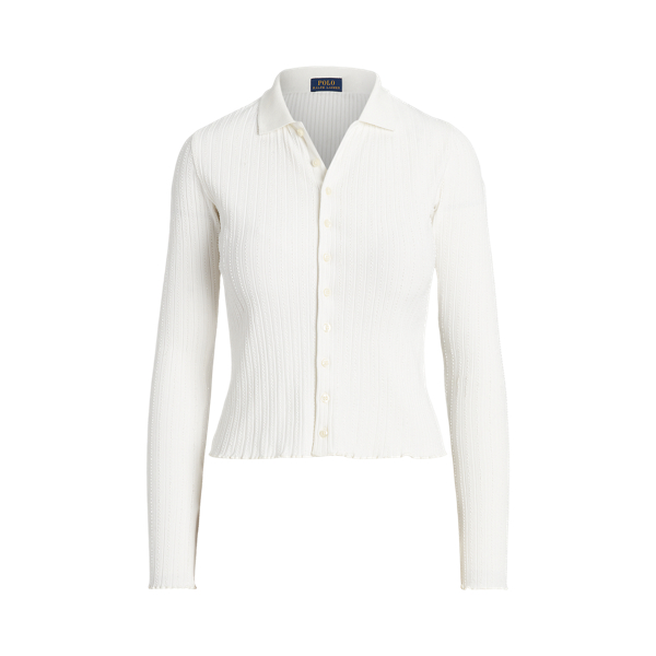 Beaded Cropped Ribbed Polo Shirt Very well made.