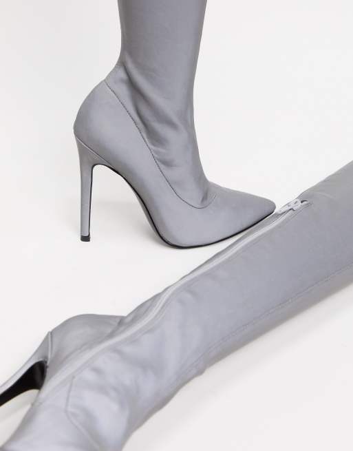 ASOS DESIGN Kendra stiletto thigh high boots in reflective Very well made.