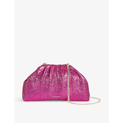 Donner Glitter embellished Woven Clutch Bag In Deep pink Very well made.