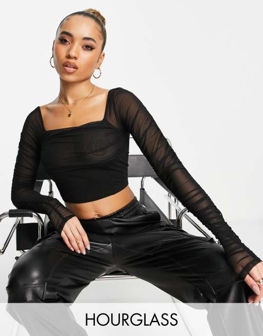 ASOS DESIGN Petite cropped long sleeve mesh top in black BLACK Very well made.
