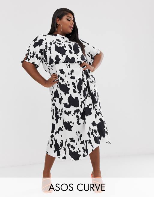 ASOS DESIGN Curve ruched skirt midi dress in cow print Very well made.