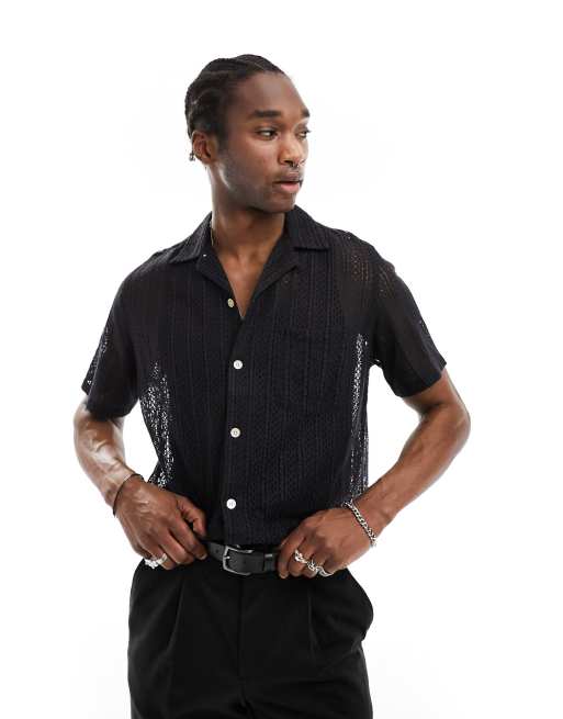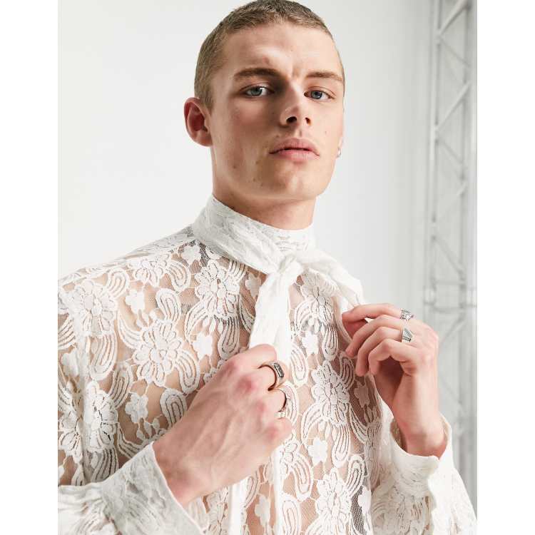 ASOS DESIGN sheer lace shirt with tie cuff detail in white Very well made.