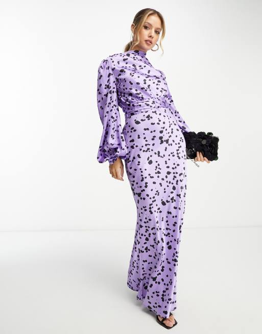 ASOS DESIGN high cowl neck satin maxi dress with pleated belt in Very well made.