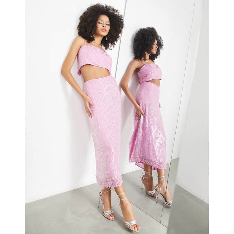 ASOS EDITION sequin cami crop top pencil midi skirt in pink ASOS Very well made.