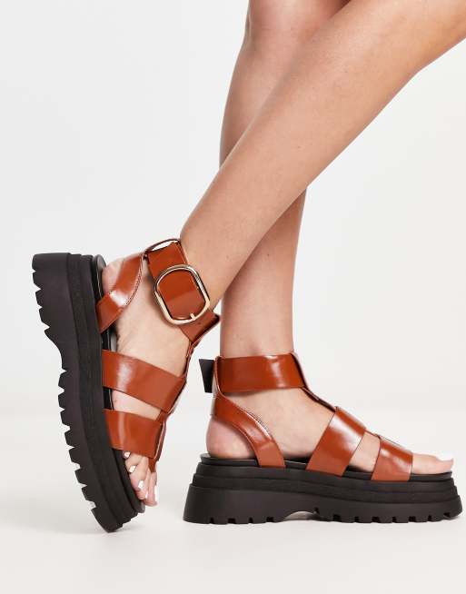ASOS DESIGN Forrest leather strappy chunky flat sandals in tan ASOS Very well made.