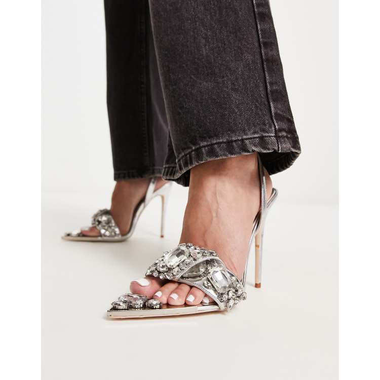Azalea Wang Tilly embellished strappy heeled sandals in silver Very well made.