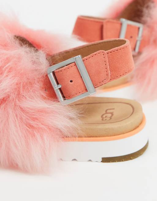 UGG PINK FLUFF SUGAR PLATFORM SLIDE FAUX FUR 3 SANDAL SHOE Very well made.
