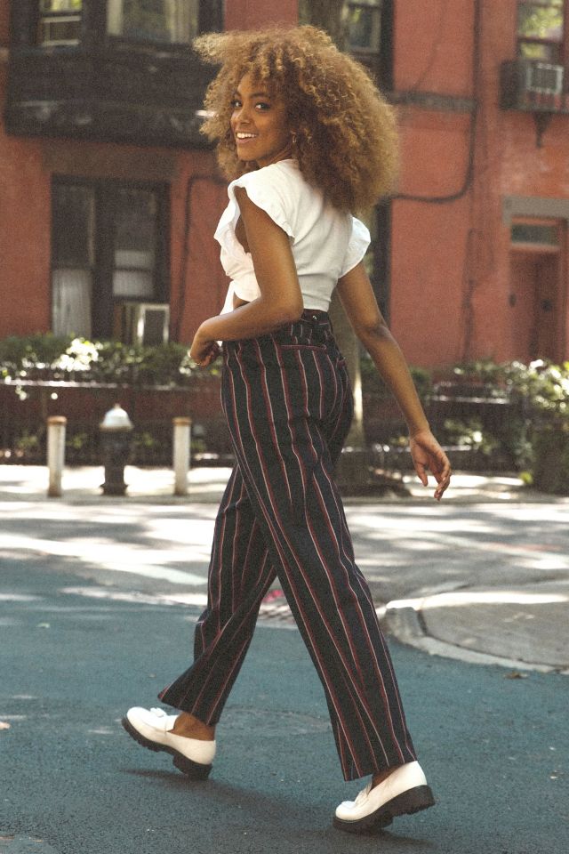Urban Outfitters Uo Pinstripe Side Split Flare Pant in Black Lyst Very well made.